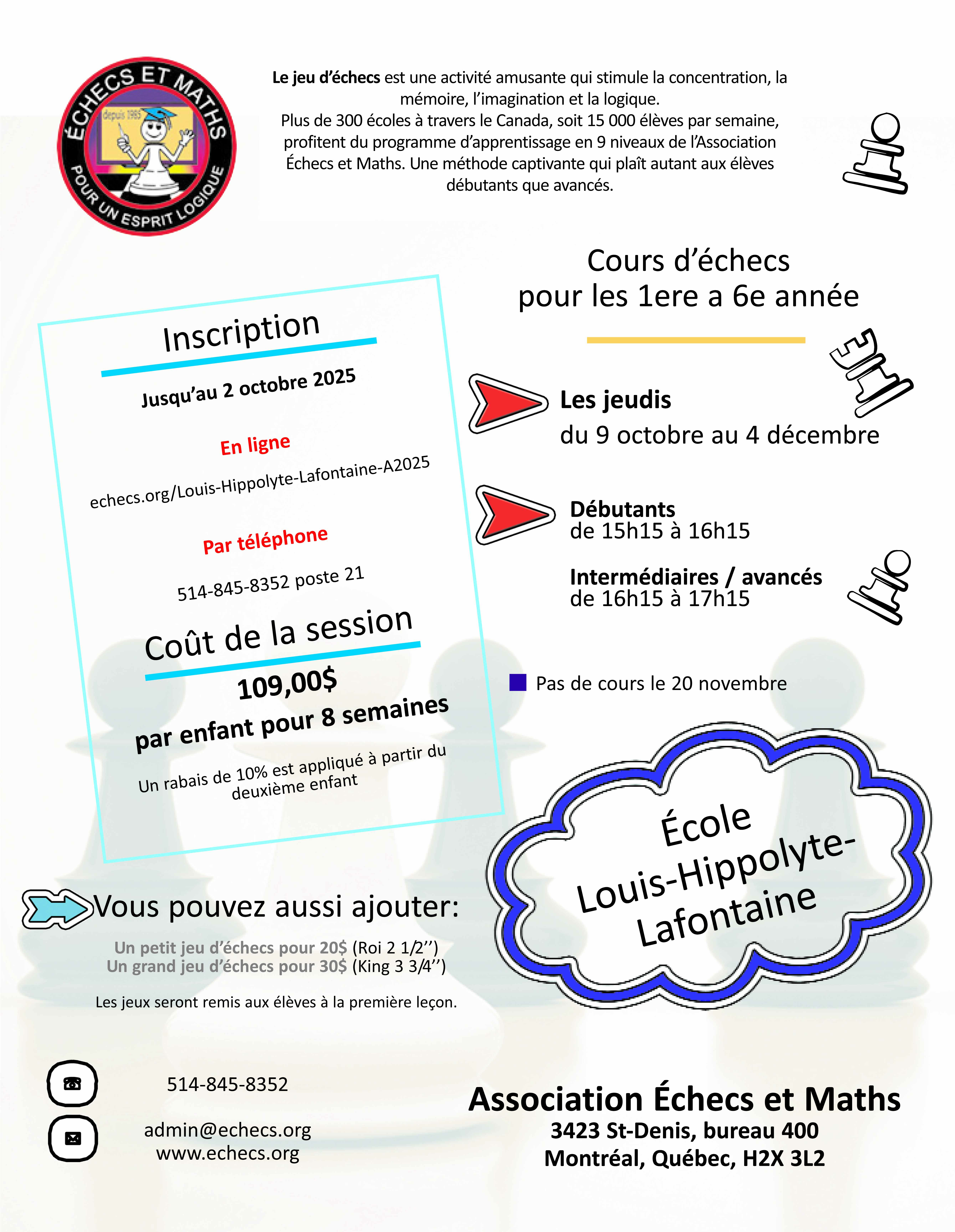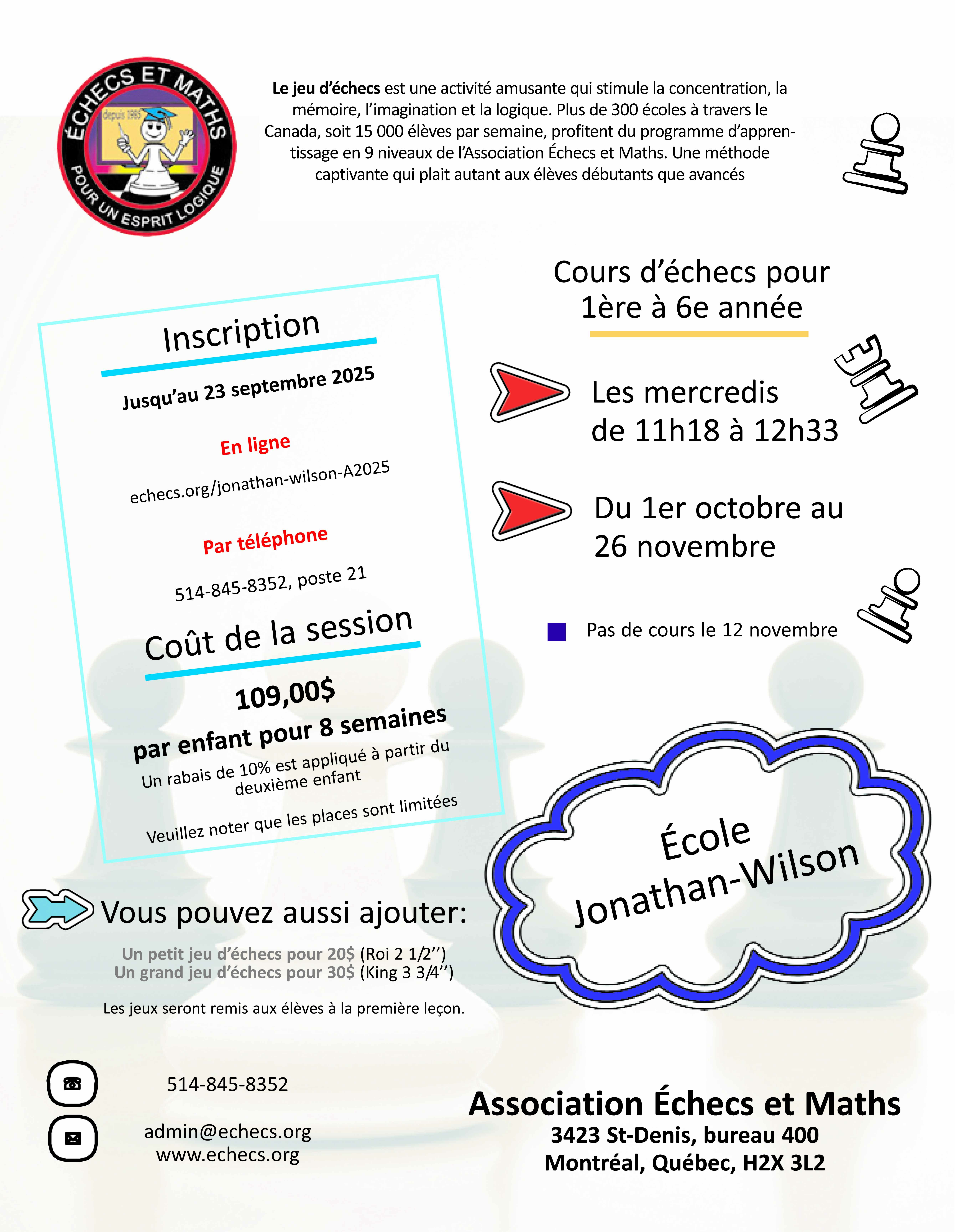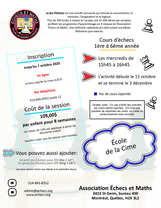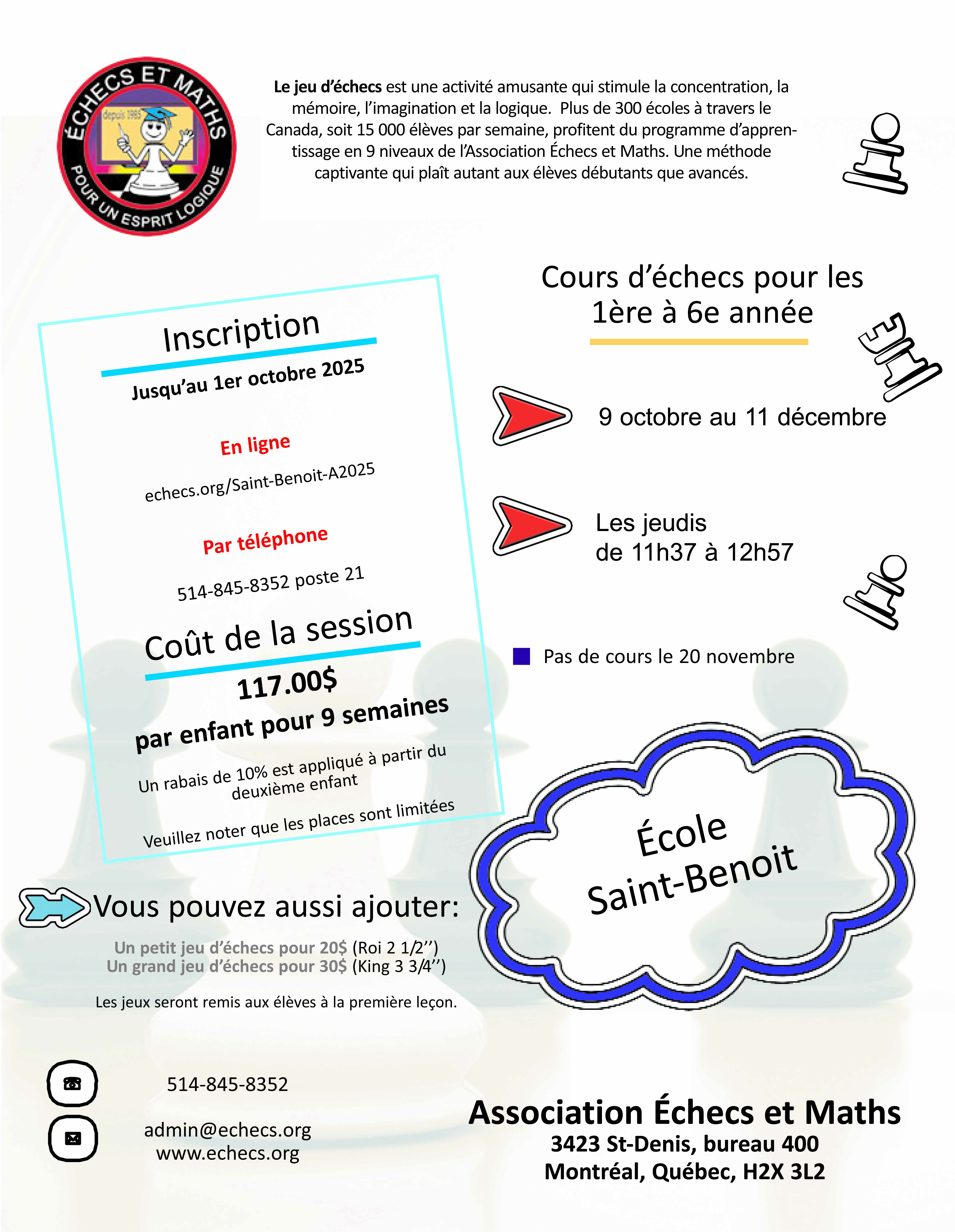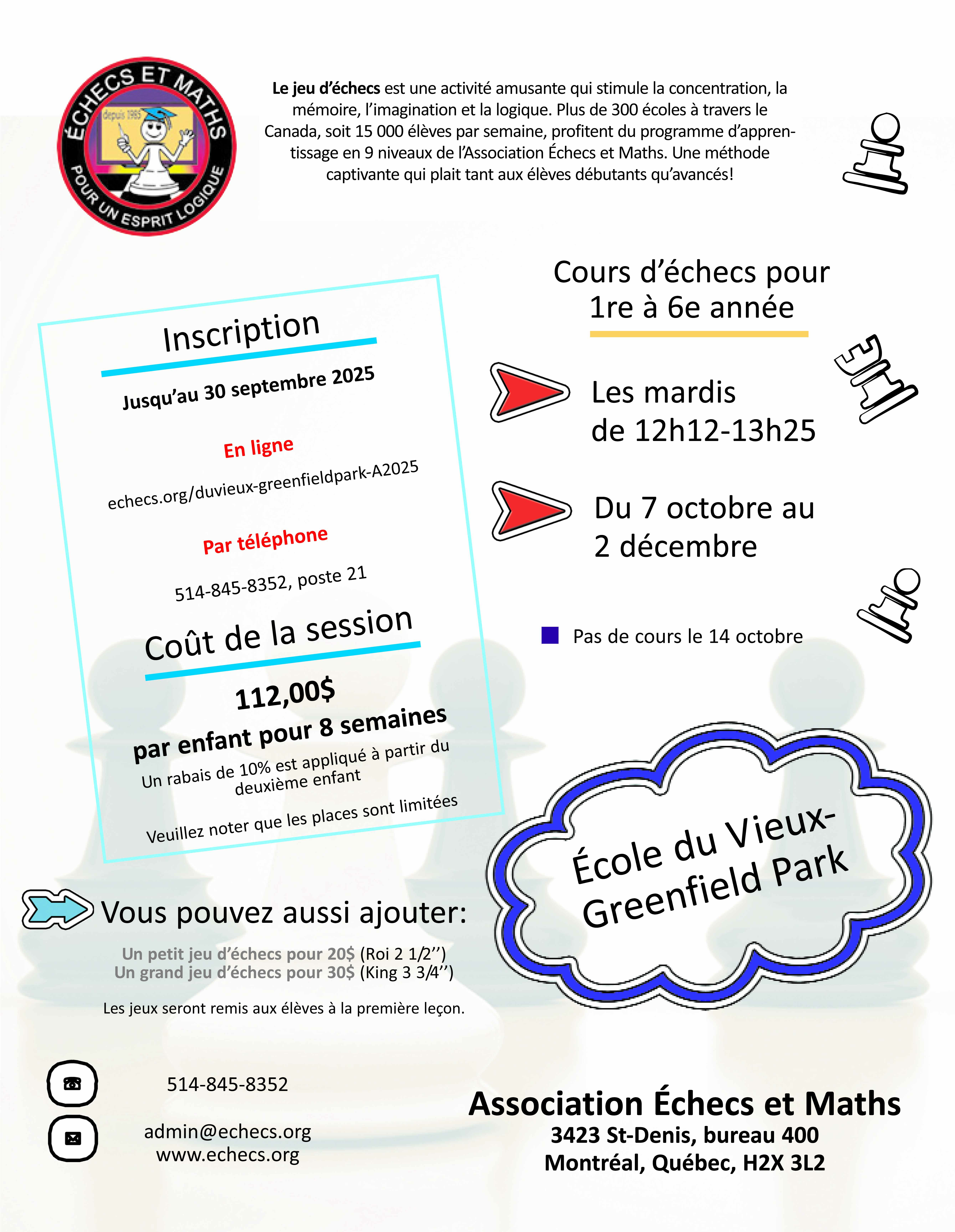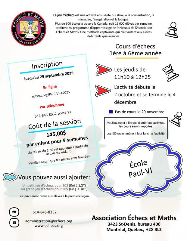 * Ensembles d'échecs disponibles uniquement avec l'achat d'un cours d'échecs.